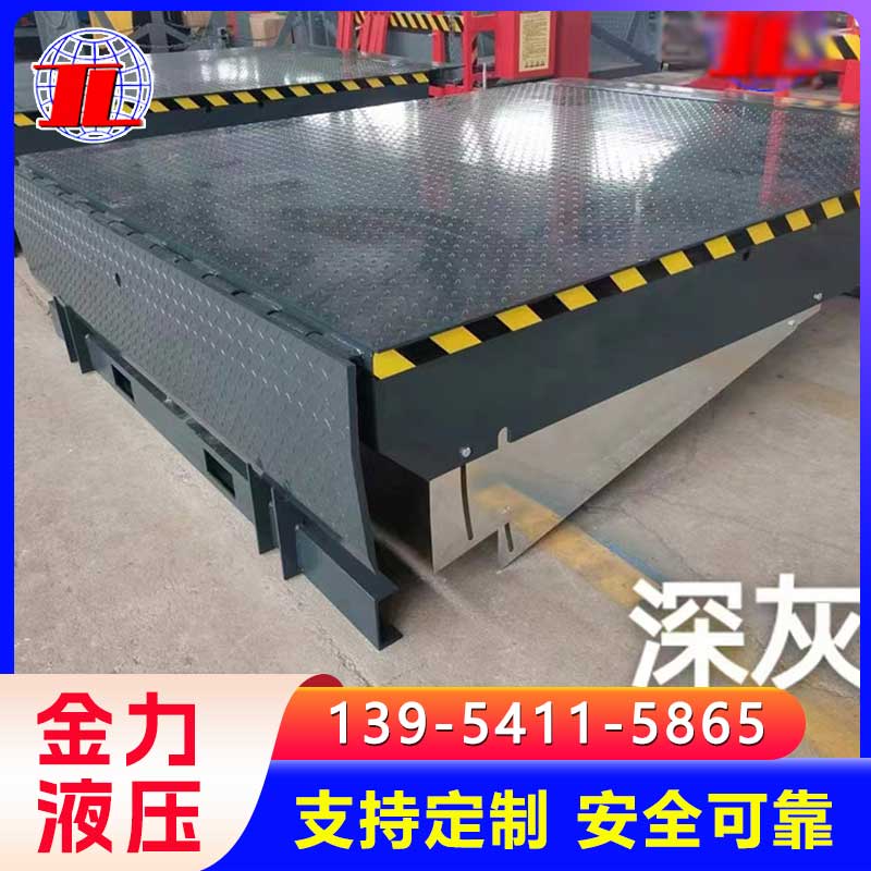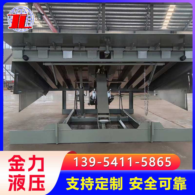 主体结构:通常由高强度钢材制成,主要包括一个可升降的平台和一个与货车车厢搭接的过桥。平台部分用于承载叉车及货物,而过桥则是连接平台与车厢的通道。